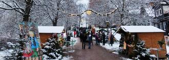 Begleitet von Schnee und frostigen Temperaturen fand am 3. Adventswochenende der diesjährige Weihnachtsmarkt der Stadt Königsee vor der festlich beleuchteten Kulisse der Königseer Kirche „Zum Lobe Gottes“ statt. Zwischen den weihnachtlich geschmückten Marktständen zog der Duft von Glühwein, Weihnachtsgebäck und anderen Leckereien durch die Luft. Die überlebensgroßen handgefertigten Märchenfiguren erfreuten auch in diesem Jahr die Besucher.