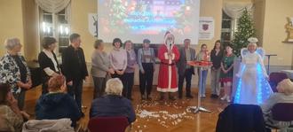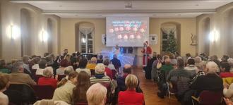 Großen Anklang fand zudem die Mundartstunde im Advent unter dem Motto „Eine Stunde zum Schmunzeln und Erinnern“. Durch das Programm führten Bürgermeister Marco Waschkowski - in der Rolle des Weihnachtsmannes - und die Vorsitzende des Heimatvereins, Erika Lichtenheld, als Weihnachtsengel. Gemeinsam begleiteten sie mit Dr. Udo Decker das Publikum durch einen unterhaltsamen und zugleich heimatverbundenen Abend.
