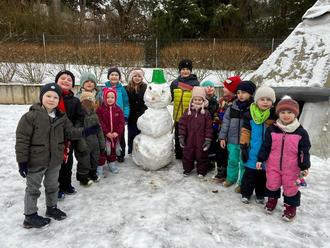 Mit viel Teamarbeit und Ausdauer sind bereits die ersten „Frosty-Freunde“ auf unserem Gelände eingezogen. Das Bauen im Schnee macht nicht nur riesigen Spaß, sondern fördert auch die Motorik und das Gemeinschaftsgefühl. Wir genießen die weiße Pracht in vollen Zügen und freuen uns auf jede weitere Schneeflocke, die uns zum Spielen im Freien einlädt.
