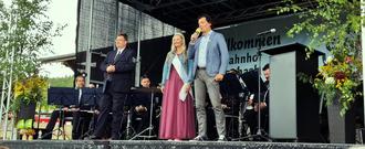 Bürgermeister Marco Waschkowski begrüßte am Bahnhof Rottenbach die zahlreich Erschienenen. Die Bergbahnkönigin Sylvia führte durch das Programm.
