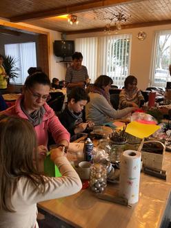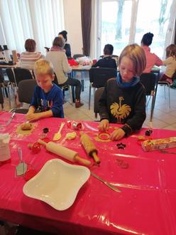 Unter der Betreuung und Anleitung der Mamis und Omis vom Heimatverein hatten die Kleinen viel Hingabe und Freude beim Basteln und Backen.
