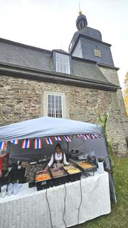 Mit einer reichhaltigen Auswahl asiatischer Spezialitäten (herzlichen Dank unserem Ortsteilbürgermeister Ingo Kürsten und seiner Frau!) sowie Thüringer Rostbratwürsten konnte jeder Gaumen über Mittag erfreut werden. Ein Mundartvortrag von Wilfried Heinze aus Schwarza folgte um 13 Uhr. Später gab es Kaffee und selbstgebackenen Kuchen. Für Kinder und Erwachsene gleichermaßen interessant war „Die Orgelmaus“ - vorgetragen von Annemarie Anders aus Rottenbach und Kantorin Anne-Sophie Bunk mit Klangbeispielen an unserer Schulze-Orgel.