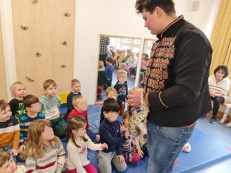 Am Montag, den 27.2.23, besuchte uns im Kindergarten die Schlange Paula vom Zirkus Atlantik. Die Kinder von Ramona und Chris waren davon so begeistert, dass sie ihren Erzieherinnen danach viele Löcher in den Bauch fragten. Dabei interessierten die Kinder besonders folgende Fragen: "Wie viele Zähne hat eine Schlange?" oder "Wie laufen denn Schlangen, Paula hatte doch gar keine Beine?!". So gestalteten wir kurzer Hand eine Themenwoche und versuchten alle Fragen der Kinder zu beantworten. Anhand verschiedener Bilder untersuchten wir beispielsweise das Skelett, die Zähne und die Haut von Schlangen. Passend dazu sagen wir Lieder über Schlangen und malten diese.