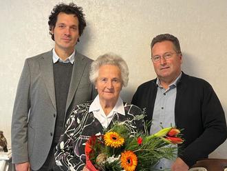 Ihren 90. Geburtstag feierte am 5. Dezember 2024 Helga Brand in Königsee. Bürgermeister Marco Waschkowski gratulierte auf das Herzlichste. Mit auf dem Foto ihr Sohn Jens Brand.