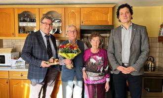 Ortsteilbürgermeister Hans-Steffen Herbst und Bürgermeister Marco Waschkowski überbrachten die herzlichsten Glückwünsche. Mit auf dem Bild Bernhard Schillings Frau Christel.