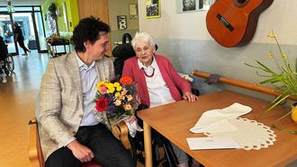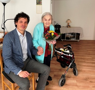 Zu ihrem 90. Geburtstag am 12. April 2024 gratulierte der Bürgermeister Anna-Luise Schuster im AWO-Pflegeheim in Königsee sehr herzlich.