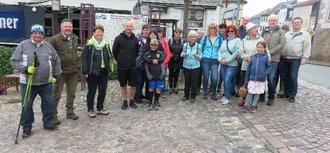 Die Königseer Wandergruppe starteten zur Sternwanderung auf dem Markt in Königsee und wurden hier von Hauptamtsleiterin Annegret Finger begrüßt. Mit dabei der stellvertretende Bürgermeister Ralf Sieland.