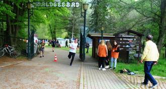 Zur unterstützenden Finanzierung eines Fuß-Ballkäfigs für den Schulhof hatte der Förderverein der Regelschule zum Spendenlauf aufgerufen. Bei schönstem Sonnenschein, guter Stimmung sowie besten Laufbedingungen starteten 60 kleine und große Läuferinnen und Läufer in 2 Blöcken. Nach einer Aufwärmrunde gingen zuerst die weiblichen Läufer an den Start. Nach einer Stunde Laufzeit wurde die Strecke freigegeben für die männlichen Läufer. Auf dem abgesteckten Weg konnte man nicht nur Schüler, sondern auch einige Eltern und Geschwister sowie Lehrer und eine Läuferin aus einer Firma der Region gemeinsame Runden ziehen sehen. Während der gesamten Zeit standen im Start- und Zielbereich Helfer bereit, welche Wasser und Obststückchen reichten. Gleichfalls wurden die Rundenanzahlen registriert.