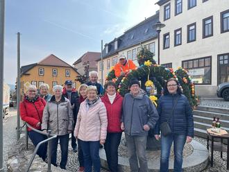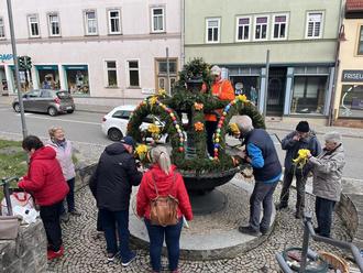In der 14. Kalenderwoche haben die Waldseefreunde den Brunnen auf dem Dr. Max Näder Platz final mit Osterschmuck versehen. Zuvor hatten sie gemeinsam die Bögen gebunden.
