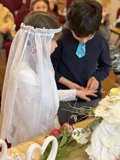 Aber das war noch nicht alles! Der Höhepunkt des Tages war eine entzückende Kinderhochzeit, die zu Ehren unserer kleinen Besucher organisiert wurde. Im Standesamt war alles wie zu einer richtigen Trauung vorbereitet und die Kinder spielten mit Begeisterung ihre Rollen in dieser liebevoll gestalteten Zeremonie.