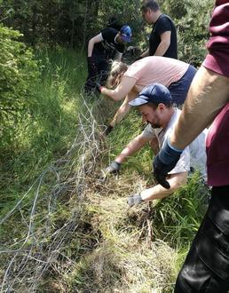 Nach Absprache mit dem hiesigen Revierförster ging es für 12 Freiwillige in den Stadtwald, um einen alten und zum Teil beschädigten Wildzaun freizuschneiden und abzubauen.