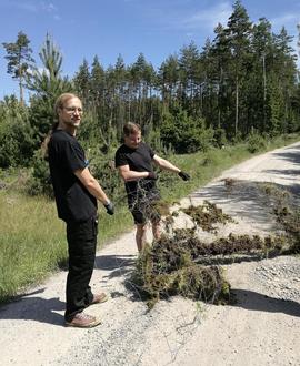 Die Aktion war schweißtreibend, aber es fühlte sich gut an, sofort das Ergebnis unserer Mühe sehen und eine große Menge an Draht aus dem Waldstück tragen zu können.