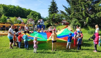 „Wir haben den Kindertag richtig groß gefeiert. Schon das Frühstück war etwas Besonderes, es gab echte Leckereien. Danach nutzten wir das schöne Wetter, starteten gemeinsam im Garten am Schwungtuch und später konnten die Kinder von den Erziehern vorbereitete Stationen nutzen. Zielwurf, Bewegungs- und Barfußparcours, Massage, Kinderschminken u.v.m. standen zur Auswahl“, sagt Leiterin Mandy Machleit, Leiterin in Evangelischen Kindergarten Senfkorn in Rottenbach. Sie freute sich über das breite Angebot und die gute Zusammenarbeit zur Vorbereitung in ihrem Team.