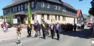 Der Höhepunkt war am Sonntag der Festumzug und das Sängertreffen mit 13 befreundeten Chören im Pfarrgarten in Dörnfeld an der Heide.