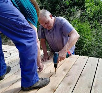 Als im letzten Frühjahr die in die Jahre gekommene Fußgängerbrücke zwischen Bushaltestelle und Spielplatz in Mankenbach vom Bauhof gesperrt worden ist, war schnell klar, dass sich einige engagierte Mankenbacher am Umbau beteiligen möchten. Nicht zuletzt, weil das Domizil der Frauen und Männer um Wolfgang Friederich, die sich zur Gemeinschaft „Dienstagsbank“ zusammengeschlossen haben, über diese Brücke erreichen lässt. Seit Jahren kümmert man sich schon um die idyllisch gelegene Hütte am Waldsportplatz.