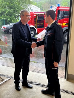 Eine besondere Überraschung übergab Landrat Marko Wolfram an die Jugendfeuerwehr Königsee. Mit einer Spende von 200 Euro unterstützt der Landrat die Jugendarbeit der Feuerwehr. „Die Bevölkerung des Landkreises ist auf eine funktionierende Feuerwehr angewiesen. Deshalb ist es wichtig, früh in die Nachwuchsförderung zu investieren. Außerdem ist die Jugendfeuerwehr ein großartiger Anlaufpunkt für Kinder und Jugendliche, um sich in einer Gruppe zu engagieren“, so der Landrat.