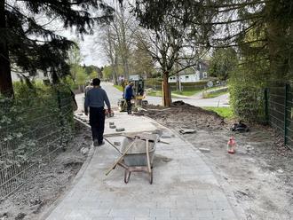 Bis auf die Einmündungsbereiche an der Kreuzung Otto-Nuschke-Straße und in die Hospitalstraße sind die Arbeiten zur Pflasterung des Weges auf einer Breite von ca. 2,5 m abgeschlossen. Derzeit erfolgt die Erneuerung des Gehwegbereiches im Kreuzungsbereich der Otto-Nuschke-Straße. Zur besseren Querung zum Gehweg der Neuen Schulstraße erfolgt eine behindertengerechte Absenkung der Borde. Mit den Arbeiten wurde die Firma TS Bau Behringen beauftragt. Ab dem 28.04.2025 sollen die Arbeiten zur Begrünung der Randbereiche durchgeführt werden. Hierbei ist das Pflanzen einzelner Büsche und Bäume vorgesehen. Zum Verweilen am Weg ist die Aufstellung zusätzlicher Bänke vorgesehen. Die Nutzung des Weges soll ausschließlich durch Fußgänger und Radfahrer erfolgen. Deshalb wird jeweils ein Poller am Anfang und Ende des Weges eingebaut. Mit der Fertigstellung der Arbeiten wird Ende Mai gerechnet.