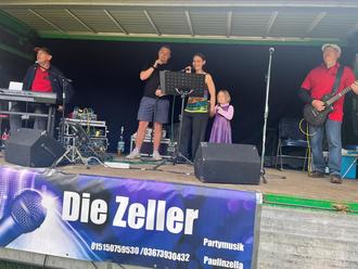 Folgendes hat sich zugetragen: die hiesige Band „Die Zeller“ mit „special Guests“ sorgten für die musikalische Untermalung dieses Ereignisses, der Heimatverein kümmerte sich neben dem Auf- und Abbau um das leibliche Wohl der Gäste und die Hüpfburg übernahm die Rolle des Kindermädchens.