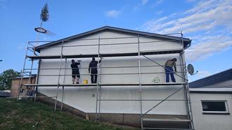 Das ehemalige Vereinshaus von Oberhain, das in der Wendezeit fertiggestellt wurde, erhielt vor genau 20 Jahren eine Fahrzeughalle als Erweiterungsbau für die Feuerwehr. Seitdem wird das gesamte Areal von der Feuerwehr gemeinsam mit den Oberhainer Vereinen genutzt. Da der Zahn der Zeit an der Fassade nagte und eine Auffrischung notwendig wurde, bemühte sich der Ortsteilbürgermeister bereits vor längerer Zeit bei der Stadt um die Bereitstellung der benötigten Materialien.