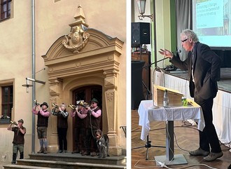 Der letzte Höhepunkt des Tages war der eigentliche Vortrag, in dem Prof. Dr. Uwe Schirmer, der Lehrstuhlinhaber für Thüringische Landesgeschichte an der Universität in Jena, sehr kurzweilig und ausgesprochen detailliert und lebendig darstellte, was in den wenigen Tagen des Aufstandes im Frühjahr 1525 geschehen war. Man hatte das Gefühl, als ob es gestern gewesen wäre und alle dabei gewesen waren. Auch der Bürgermeister war anwesend, was uns sehr freute und der Begebenheit eine besondere Note verlieh.