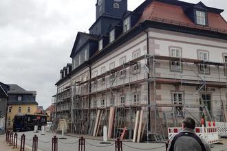 In der Zeit vom 21.05. bis 19.07. finden am Rathaus umfangreiche Renovierungsmaßnahmen statt. Vorgesehen sind notwendige Reparaturarbeiten am Dach, Putzarbeiten, Streichen und Reparieren der Holzfenster, der Fassade und der Holzbauteile am Turm und Dachkasten. Seit der grundhaften Sanierung im Jahre 1999 sind nunmehr über 25 Jahre vergangen und der Zahn der Zeit ist auch an unserem denkmalgeschützten Rathaus nicht vorbeigegangen. In Abstimmung mit den bauausführenden Firmen sind wir bestrebt die Arbeiten an der Marktseite also zur B88 als erstes abzuschließen um die Einschränkung so kurz wie möglich zu halten.