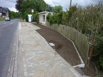 Bedingt durch die Lieferzeiten erfolgt die Montage des neuen Buswartehäuschens und der neuen Straßenlampen allerdings erst im Herbst. Die notwendigen Tiefbau- und Gründungsarbeiten sind hierfür bereits fertiggestellt.