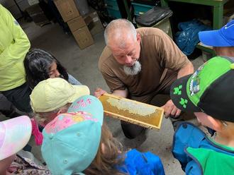Die Kinder unseres Entdeckerclubs waren die letzten zwei Juliwochen im Stadtwald Königsee unterwegs. Dabei konnten sie eine Menge erleben und sich kreativ entfalten. Begleitet wurden sie unteranderem auch von unserer stellvertretenden Kindergartenleiterin Isabel, die derzeit eine Weiterbildung zur Waldpädagogin absolviert. Am Freitag, den 21.07.2023 unternahmen die Kinder eine Wanderung nach Horba, wo sie die Imkerei Götze besuchten. Dort konnten die Vorschüler ihre Fragen zu den Bienen und der Honigherstellung loswerden, die natürlich fachmännisch von Sabine und Ralf Götze beantwortet wurden und natürlich durfte auch mal gekostet werden. Vielen Dank an dieser Stelle für den informativen Vormittag.