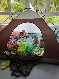 Die Waldprojekttage endeten mit einer Übernachtung im Kindergarten. Dabei gab es viele Leckereien zu essen und eine kleine Kinoveranstaltung.