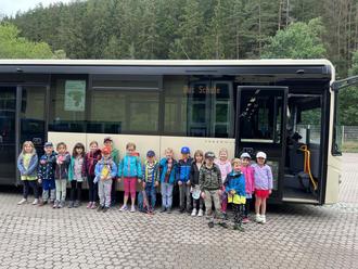 Um unsere Schulanfänger bestmöglich auf den Schulweg vorzubereiten, nahmen sie Anfang August an der „Busschule“ des Nahverkehrsunternehmens KomBus teil. Dazu wurden sie früh im Kindergarten abgeholt und durften sich an der Firmenniederlassung Mellenbach umschauen. Es wurde unter anderem gezeigt, wie man ordentlich in einen Bus ein- und auch wieder aussteigt und was bei einer Gefahrenbremsung passiert. Zum Abschluss gab es für alle Kinder noch ein kleines Geschenk.