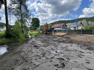 Aktuell wird im Rahmen der Fließgewässerentwicklung an der Rinne in Rottenbach die Verwallung errichtet. Die Verwallung wird aus Lehm modelliert mit Muttererde abgedeckt und anschließend mit Grassamen angesät.