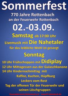 Der Feuerwehrverein Rottenbach lädt zum Sommerfest - 770 Jahre Rottenbach - am 02. und 03. 09. 2023 ein. Das Programm ist unter der Rubrik Veranstaltungskalender veröffentlicht.
