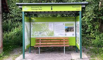 Am Paulinzellaer Parkplatz wurden ein Naturpark-Tor, eine Naturpark-Infohütte und eine Trockenstelle (als Toilette) für Wanderer errichtet.