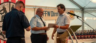 Im Rahmen dieses Jubiläums wurden Martin Möller und Hans Vogler das Große Brandschutzehrenzeichen am Bande für 50 Jahre treue Dienste in der Feuerwehr vom Landesverband der Feuerwehr verliehen.