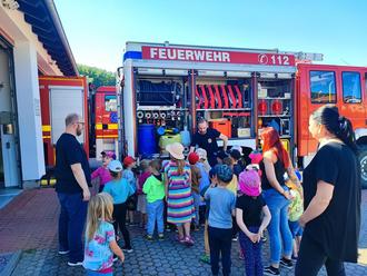 Neben dem freien Spielen und Bewegen an der frischen Luft, widmet sich der Kindergarten in Rottenbach immer wieder konkreten Themen. In den Sommerferien lief das Projekt „Die vier Elemente“. In jeder Woche wurde ein Element näher betrachtet und kennengelernt. Am Ende ging um das Feuer und den Schutz davor. Passend, dass nicht weit vom Kindergarten die Freiwillige Feuerwehr ihr Domizil hat.