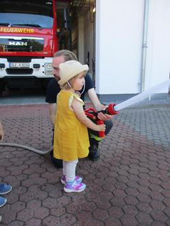 Besonders spannend wurde es, als die Kinder erleben konnten, mit wie viel Druck das Wasser aus den Schläuchen kommt und wie laut das Martinshorn der Einsatzwagen informiert.