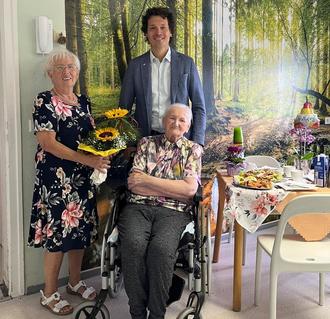 Ihren 90. Geburtstag feierte Hanna Nöckel am 9. September im GenoCare-Heim in Königsee. Bürgermeister Marco Waschkowski überbrachte die herzlichsten Glückwünsche. Mit auf dem Bild ihre Schwägerin Renate Nöckel.