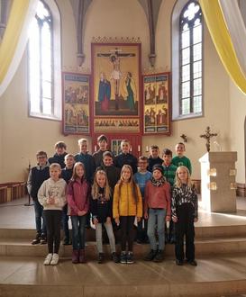 Am Dienstag standen zunächst die Feste im Kirchenjahr und ihre Bedeutung im Mittelpunkt. Hier konnten die Kinder auf ein großes Vorwissen zurückgreifen und nötige Zusammenhänge schnell erfassen. Ein großes Interesse zeigten die neuen Ministranten für die liturgischen Geräte und ihre Verwendung im Gottesdienst. Nach einem Besuch der Mariengrotte bestand am Nachmittag die Möglichkeit, Kreuze als Anhänger zu modellieren.