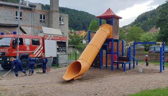 Viele Hände, schnelles Ende! Unter diesem Motto unterstützte unsere Jugendfeuerwehr am 14.6. den Heimatverein Wendehausen beim aufräumen des Spielplatzes.