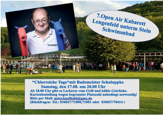 „Chlorreiche Tage“ ist das neue Programm mit dem alten Hasen auf dem gefliesten Parkett. Schaluppke redet, rockt und rappt, bis der letzte Zuhörer merkt: Ein Bademeister ist auch Entertainer! Und wenn die funky Bässe seiner Songeinlagen im Einklang mit den Luftblasen im Whirlpool blubbern, erreicht die Stimmung ihren pH -neutralen Höhepunkt!