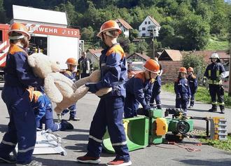 Ein paar Kinder sicherten zunächst die Einsatzstelle mit Warnkegeln und -dreiecken ab. Danach mussten sie mehrere kleine und große Äste von der Straße räumen. Wie auch bei den Großen wurde die Einsatzstelle besenrein verlassen.