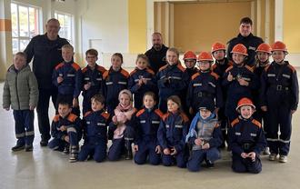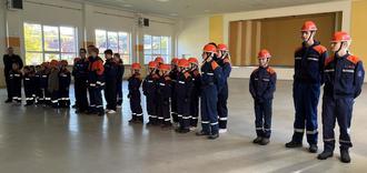 Kinder und Jugendliche der Jugendfeuerwehren am Prüfungstag zur Begrüßung