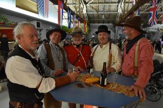 In dem einzigartigen Western-Lokal „Heyeröder Hafen“ begrüßte Gastgeber Eckhard Köthe (3. von links) die Countryfreunde Matthias Gebhardt, Benno Kaspari, Mike Klingebiel und Uwe Knopf (von links) aus Silberhausen, Leinefelde und Heiligenstadt zur legendären Country- und Western-Nacht im Südeichsfeld.
