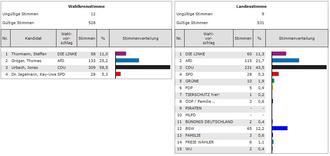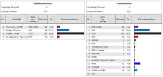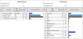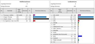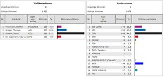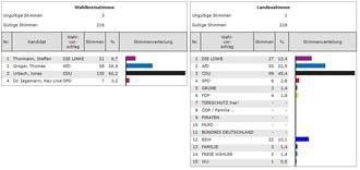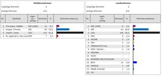 | Wahlberechtigte | : | 991 | (ohne Wahlschein: 784 / mit Wahlschein: 207) |