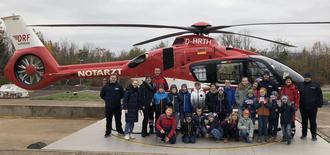 Zum Ende der Führung hörten einige Kinder, dass der Rettungshubschrauber wieder gelandet war. Schnell bedankte man sich bei dem Rettungssanitäter für die tolle Führung, und es ging los zu Christoph 37. Die Notfallsanitäterin von der Luftrettung gab der Jugendfeuerwehr eine kurze Führung zum Rettungshubschrauber. Zum Abschied bekam jedes Kind einen Sticker von Christoph 37 und durfte sich einmal hineinsetzen.