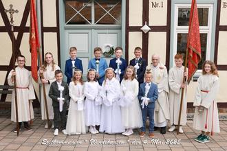 Die Erstkommunionkinder aus Wendehausen und Treffurt: Felix Löw, Philip Thon, Leon Vanselow, Jonathan Marx, Milo Montag, Greta Kimpel, Thea Gräbedünkel, Rosalie Benedix, Luise Vogeley, Niklas Montag