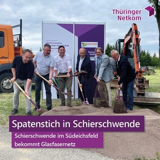 Mit dem symbolischen Spatenstich ist heute der Glasfaserausbau in Schierschwende im Südeichsfeld gestartet worden. In der Gemeinde zwischen Heyerode und Wendehausen soll jedes Gebäude mit Glasfaserdirektanschlüssen versorgt werden, so die Planung.