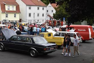 Heyerode. Als schließlich zwei „Schiffe“ aus Übersee am Heyeröder Hafen eingetroffen waren, wurde es ziemlich eng an den dortigen Anlegeplätzen. Denn der „Lincoln Continental Mark IV“ mit Siegfried Bolle aus Großbartloff und der „Chrysler Cordoba“ mit Steven Waldhelm aus Struth am Steuer brauchten wegen ihrer Ausmaße weitaus mehr Platz gegenüber anderen Gefährten. Sie alle trudelten aus vielen Richtungen zur 1. Südeichsfelder Oldtimerschau auf dem Festplatz in Heyerode ein. „Wir hätten nicht gedacht, dass das Treffen eine solch große Resonanz findet“, freute sich Thomas Fritzsche als Initiator im Namen des ausrichtenden Feuerwehrvereins.