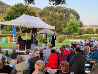 Der Lengenfelder Carneval Verein hatte wieder zum Open- Air-Kabarett ins Schwimmbad nach Lengenfeld unterm Stein eingeladen. Unterstützt wurden sie vom Team des Schwimmbadvereins, welches die Getränke und Speisenversorgung am Grill bereits ab 18.00 Uhr übernommen hatte. Auf Grund der großen Nachfrage und des guten Wetters wurde die Bühne kurzerhand auf die Rasenfläche des Bades verlegt, um allen Gästen gute Sitz- und Sichtmöglichkeiten zu bieten.