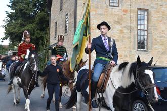 Die Kirmesfahne mit den Husaren hoch zu Ross.
