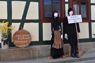 Regionalbischof Tobias Schüfer konnte anhand detailliert vorhandener Chronikaufzeichnungen darauf zurückblicken, wie die Bewohner Hallungens als Enklave des Herzogtums Sachsen-Gotha-Altenburg 1725 die Weihe ihres kleinen Gotteshauses begingen. Zu den damaligen Gästen zählten auch zwei Prinzen, darunter Erbprinz Friedrich III. Mit „Liebster Jesu, wir sind hier, dich und dein Wort anzuhören“ des Mühlhäuser Komponisten Johann Rudolf Ahle (1625 bis 1673) und „Nun danket alle Gott“ von Martin Rinckart (1586 bis 1649) sind Lieder wie auch schon zur Weihe vor 300 Jahren gesungen worden.